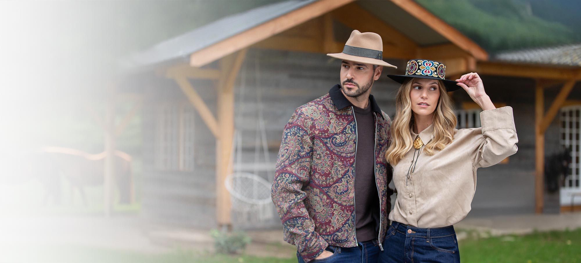 En Bon Clic Bon Genre, ¡no olvidamos a nadie! Estos caballeros encontrarán su felicidad en nuestra gama para hombre con, por qué no, un trilby para el invierno y un Sombrero Caballero para los días soleados. Estas damas, por su parte, descubrirán joyas en nuestra sección dedicada para mujeres con una Pamela o un fedora.