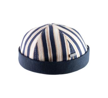 Boina de estibador en un diseño con rayas de moda. Sus motivos hacen pensar en las vacaciones. Sus colores se emparejan con las composiciones de la temporada sin problema.