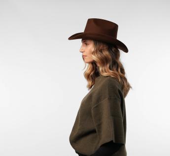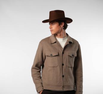 Confeccionado en fieltro de lana impermeable, protege eficazmente del frío y la humedad. El ala está reforzada con una estructura de latón oculta, permitiendo modelarla a su gusto según el efecto deseado.