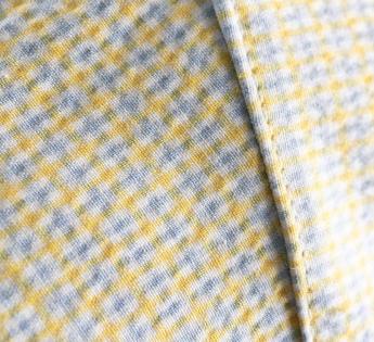 Motivo micro de guinga texturizado, su juego de motivos y relieves aporta una sensación táctil delicada y una hermosa riqueza de materia.