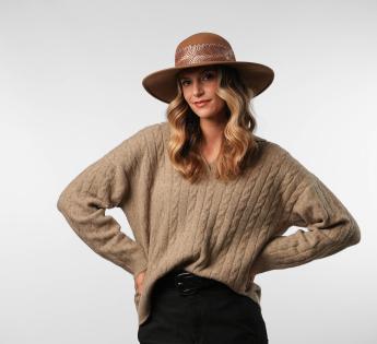 Fabricada en nuestro taller de Lyon, esta Pamela encarna un estilo bohemio chic con acabados refinados. La copa está realzada por un encaje cobrizo luminoso, con reflejos metálicos, cuidadosamente colocado a mano. Unos adornos preciosos, resaltados por nuestra discreta Etiqueta, para un resultado a la vez elegante y audaz.