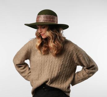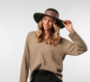 Hecha de lana afieltrada naturalmente impermeable, ofrece comodidad, protección y soporte. Su forma flexible con amplios bordes enmarca el rostro con gracia y feminidad. Una pieza excepcional, nacida de un saber hacer artesanal, para afirmar su estilo con carácter.
