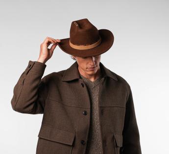 Carisma bruto y atractivo western para este sombrero cowboy confeccionado en nuestro taller de Lyon. Su fieltro de alta calidad te protege tanto de las ráfagas como de los frescores matutinos. Su copa alta con fondo plano y su ala ancha ligeramente levantada evocan la autenticidad de los grandes espacios. Finos bordados en la parte superior, un guiño a los códigos del Lejano Oeste, para un acabado refinado y distinguido.
